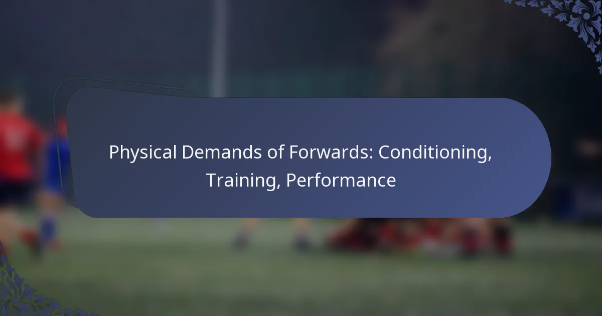 Forwards in sports are required to meet various physical demands that significantly impact their performance, including speed, agility, endurance, and strength. A well-rounded conditioning regimen is essential, incorporating cardiovascular training, strength exercises, and agility drills tailored to enhance their specific skills. By understanding these requirements, coaches can develop targeted training programs that optimize forwards’ contributions on the field.